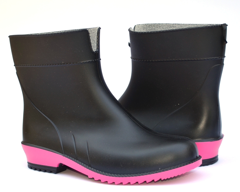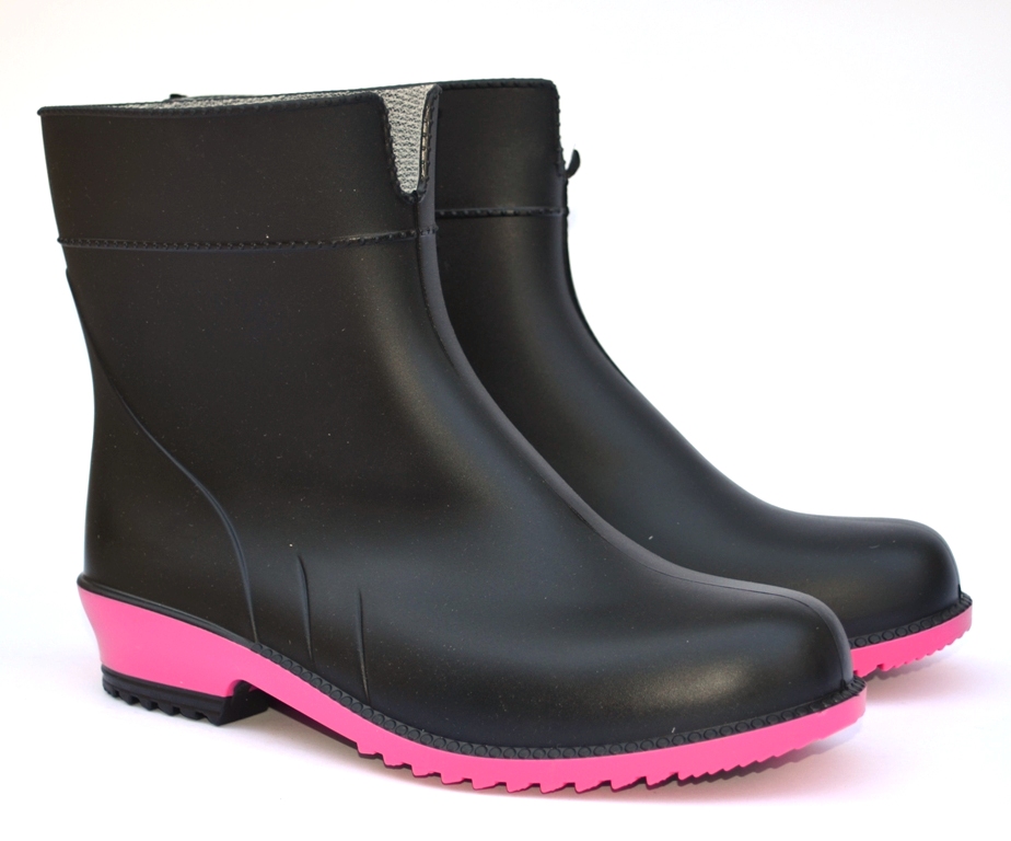 Женские резиновые полусапожки LITMA L-767-2-BF. Черные с розовым