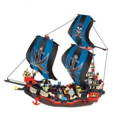 корабель, фігурки піратів, гармати, карта, якір, лебідка, скриня зі скарбами, бінокль та ще багато різних деталей для складання корабля піратів, яскрава інструкція-ілюстрація та вкладиш з картинками.