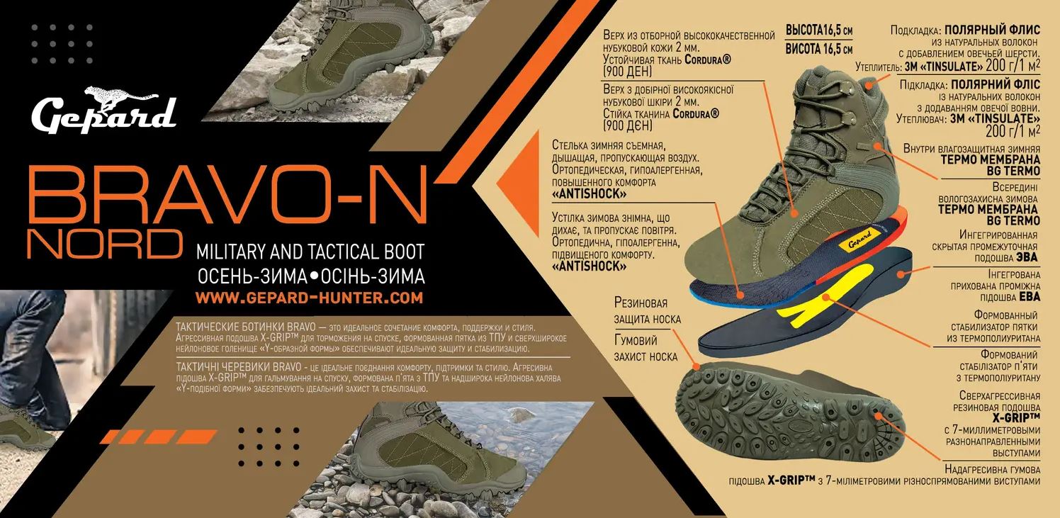 Матеріал верху – нубук щільністю 2мм, додатково оброблена водовідштовхувальним складом Waterproof, тканина Cordura®