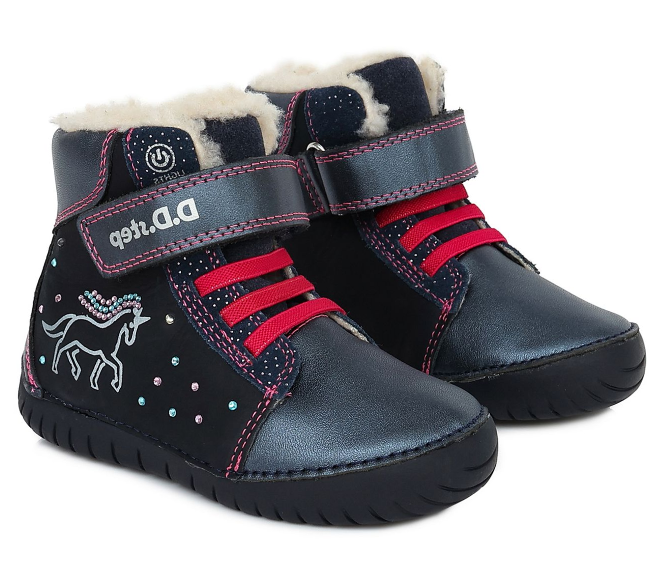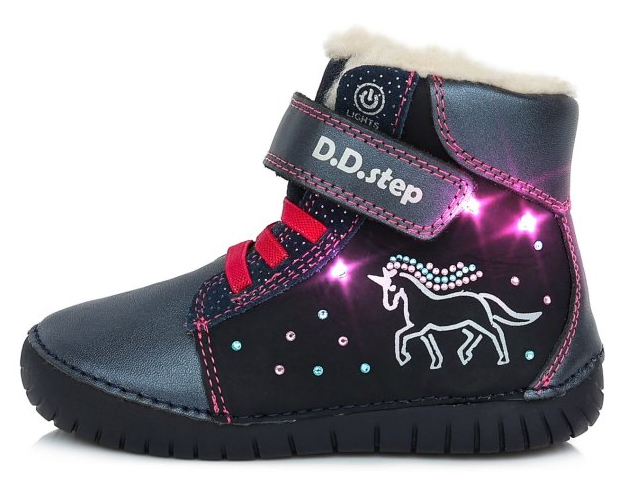 Черевики зимові шкіряні D.D.Step W050-422M з підсвіткою, зимові чоботи на дівчинку